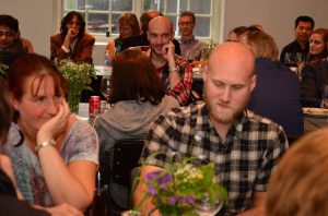 The administrative and technical staff enjoys home-made Christmas food at the department after Christmas decorating.